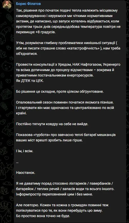 «Эта зима точно не будет простой»: мэр Днепропетровска предупреждает — отопительный сезон на Украине начнётся как можно позже