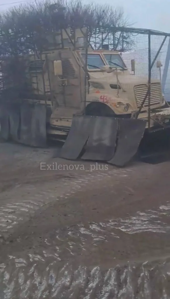 Обросший «колючками» бронеавтомобиль International MaxxPro ВСУ