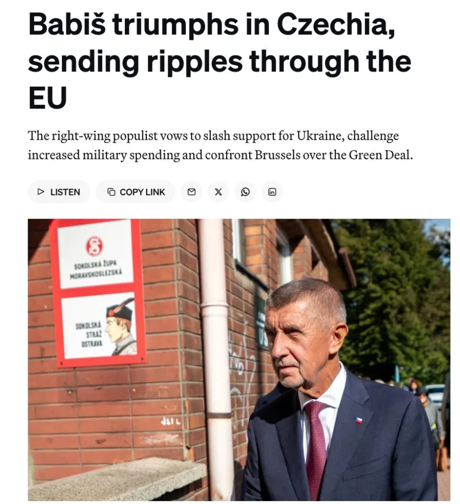Politico: Победа Бабиша грозит Чехии конфликтом с ЕС и НАТО
