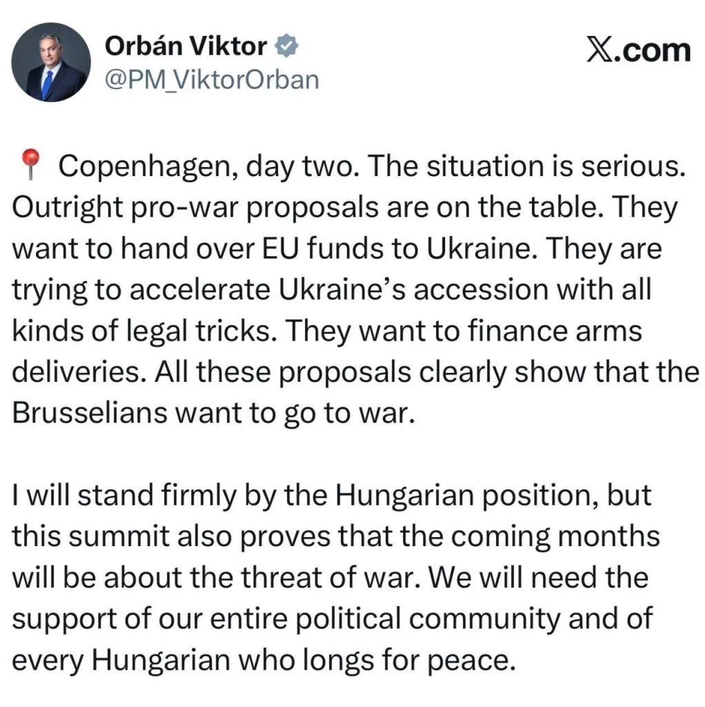 Евросоюз «хочет начать войну», заявил премьер Венгрии Орбан по итогам саммита в Копенгагене