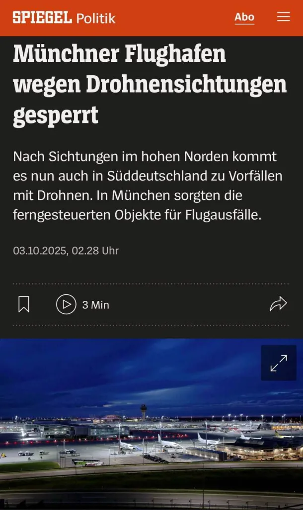 Дроны с размахом крыла до 1 метра кружили на авиабазой Люфтваффе Эрдинг и над аэропортом Мюнхена, пишет BILD