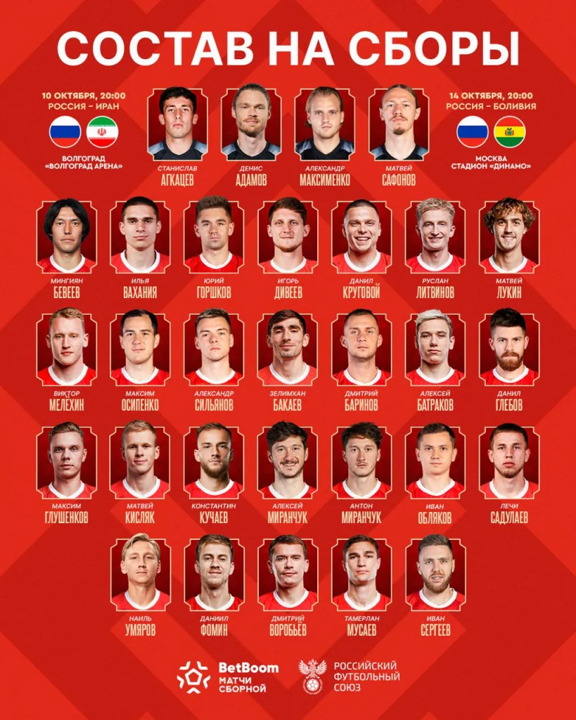 Карпин назвал состав сборной России на матчи против Ирана и Боливии