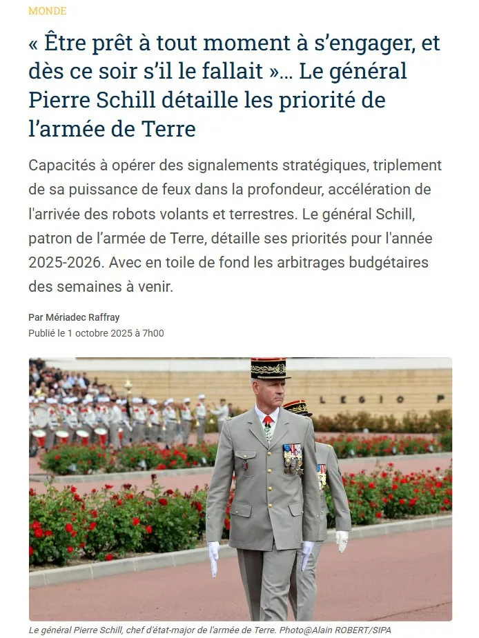 «Быть готовыми в любой момент»: глава сухопутных войск Франции поручил готовиться к войне