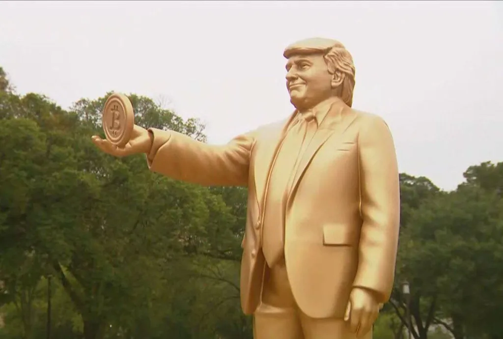 У здания Капитолия в Вашингтоне появился необычный «памятник» — золотая четырёхметровая фигура Дональда Трампа с биткоином в руке