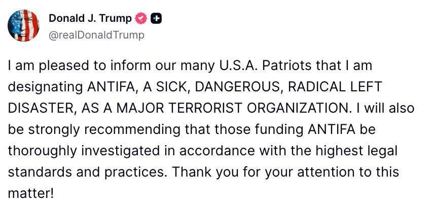 «Больная и опасная катастрофа»: Трамп признал леворадикальные движения террористическими