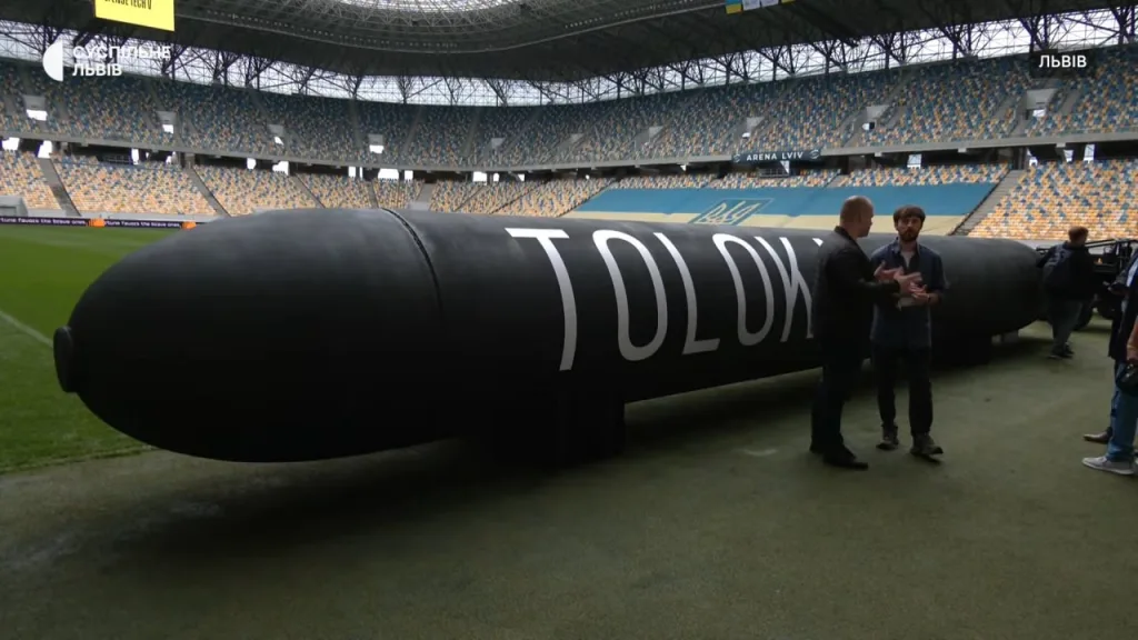 Украинский подводный дрон-торпеда TOLOKA TLK-1000, представленный на оборонной выставке Defense Tech Valley 2025 во Львове