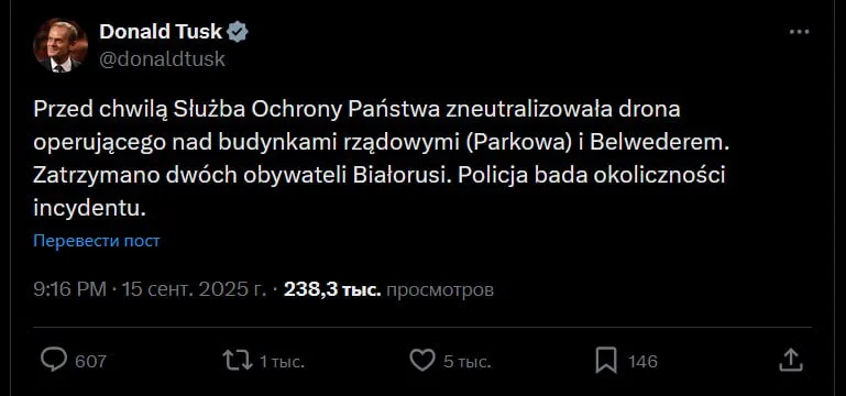 «Виноваты не русские??»: в Польше задержали украинца за запуск дрона над правительственными зданиями