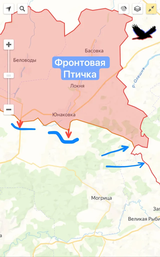 Ожесточенные бои на Сумском направлении локализованы на участке от Юнаковки до Кондратовки. Отдельно на участках идут позиционные бои