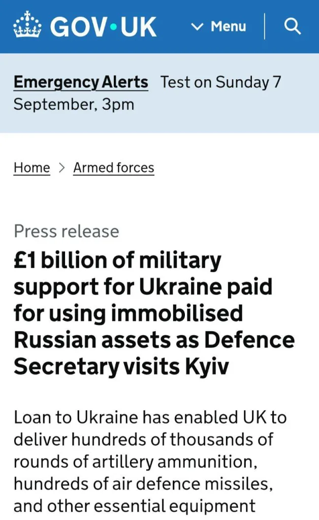 Великобритания вооружила Киев на $1,3 млрд за счёт российских активов