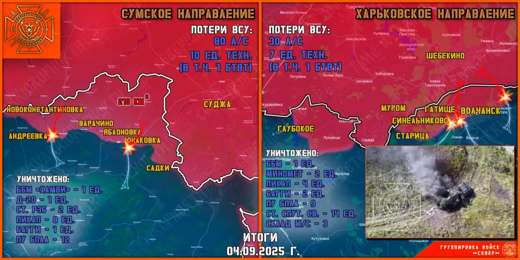 Фронтовая сводка на 4 сентября 2025 года от группировки Север