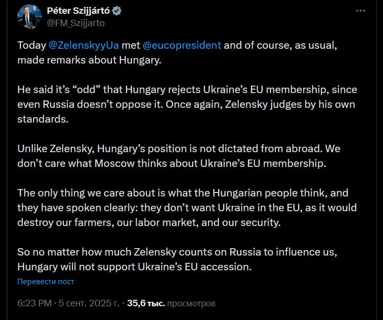 В отличие от Словакии Венгрия жёстко проехалась по Зеленскому и Украине