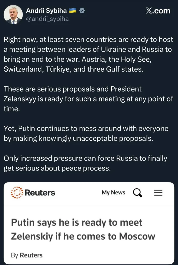 Киев отверг предложение Владимира Путина о встрече с Зеленским в Москве