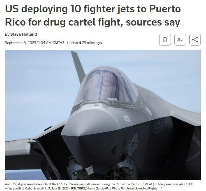 США до конца следующей недели развернут 10 истребителей F-35 на аэродроме Пуэрто-Рико для проведения операций против наркокартелей, — Reuters
