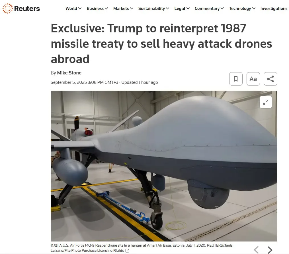 Трамп готовит продажу тяжёлых ударных дронов в обход международного договора