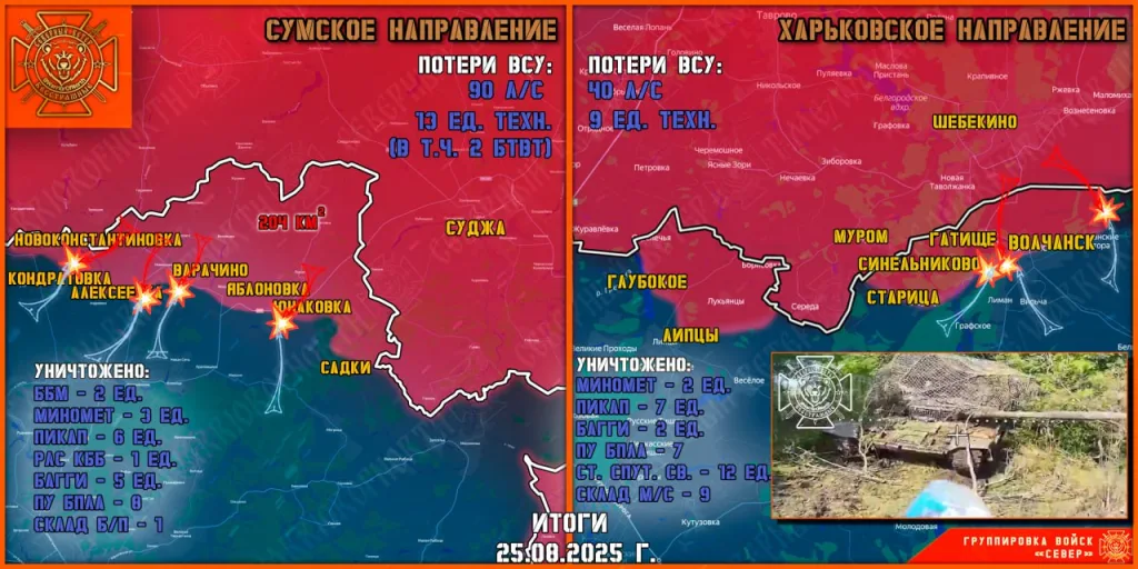 Фронтовая сводка на 25 августа 2025 года от группировки Север