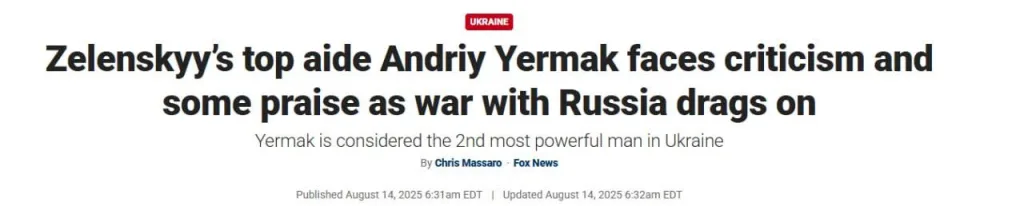 Fox News выпустил очередную разгромную статью про Андрея Ермака, главу офиса Зеленского