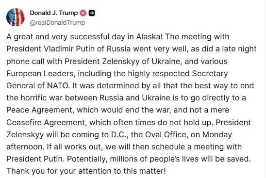 Очень интересный факт накануне предстоящих переговоров на Аляске