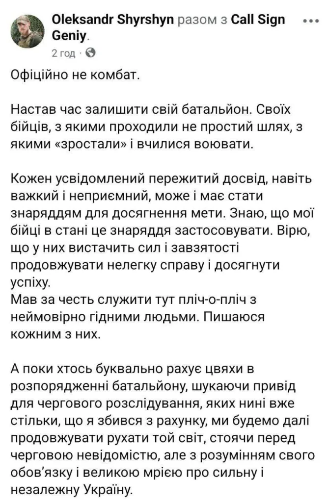 Командир батальона 47-й отдельной механизированной бригады ВСУ Александр Ширшин, ранее публично заявивший о «дебильных задачах», которые ставятся руководством по политическим мотивам, официально покинул свою должность