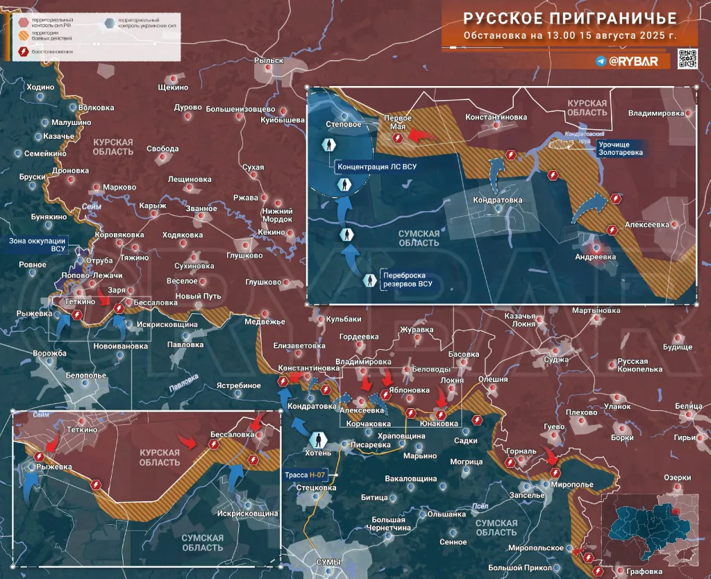 Угрозы контратак. Обстановка на Сумском направлении по состоянии на 13:00 15 августа