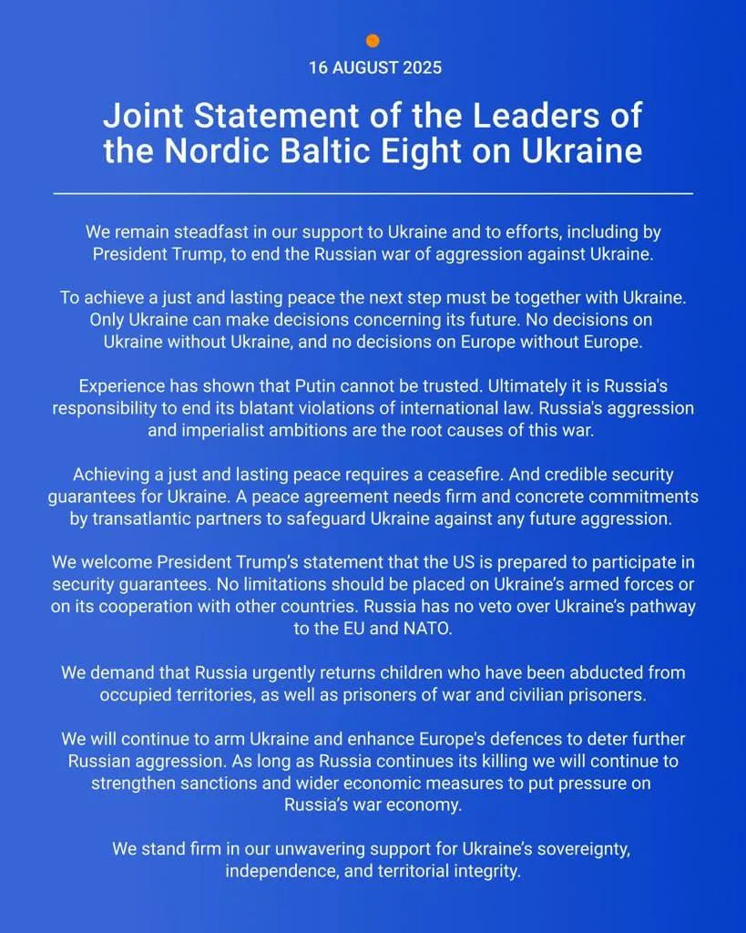 16 августа «восьмёрка» северян и прибалтийских стран Европы вывалила своё коллективное заявление по Украине