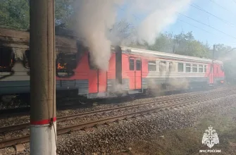 Три вагона электропоезда «Краснодар — Староминская» сгорели на площади 200 кв. м в Каневском районе, причины пожара устанавливаются, сообщили в региональном МЧС