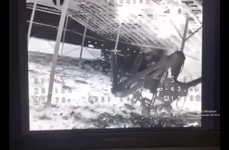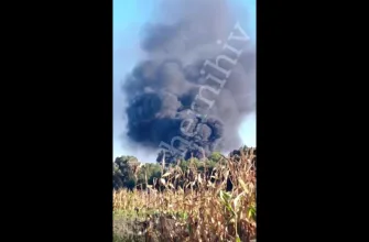 Момент удара «Герань-3» по украинской нефтебазе, снятый пожарным во время тушения
