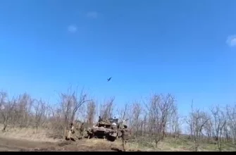 Вжух — и прямо в башню: дрон красиво поразил украинский танк во время боев за Новоелизоветовку в ДНР. За мгновение до этого в машину залезли боевики ВСУ