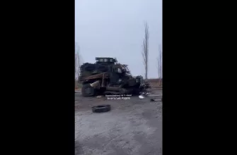 Лишившаяся гусеницы и перевернутая украинская БМП М2А2 Bradley