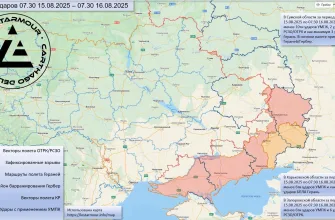 Анимированная схема ударов по территории Украины 15 августа – 16 августа 2025 года