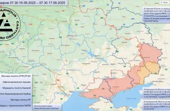 Анимированная схема ударов по территории Украины 16 августа – 17 августа 2025 года
