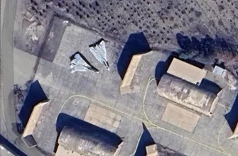 Спутниковый снимок Международного аэропорта Мешхед им. Шахида Хашеминежада на северо-востоке Ирана, в котором, предположительно, был уничтожен самолёт-заправщик Boeing 747-131 (SF) ВВС Ирана