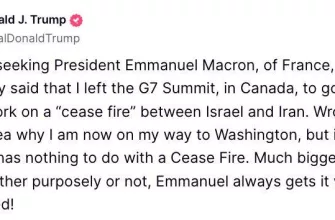 Трамп заявил, что досрочно покинул саммит G7 в Канаде не для того, чтобы заниматься прекращением огня на Ближнем Востоке. При этом он резко раскритиковал Макрона