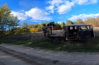 Вездеход «Улан-2» на шасси ГАЗ «Соболь» в зоне проведения СВО (едет за фронтовым ВАЗом снимающего видео)