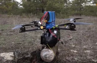Собранный сразу из 4-х FPV-дронов российский беспилотник «Вобла», предназначенный для сброса мин ТМ-62