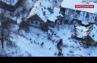 Российский флаг над селом Погребки в Курской области и работа ударных коптеров по пехоте противника на территории села во время его освобождения