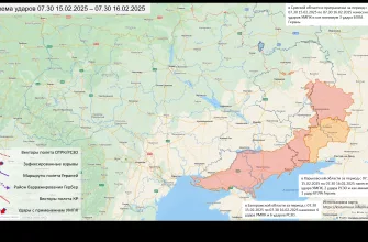 Анимированная схема ударов по территории Украины 15-16 февраля 2025 года