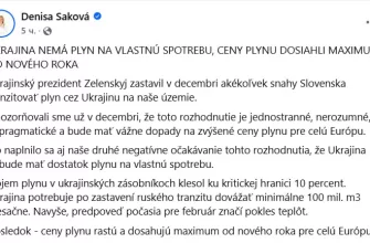 Министр экономики Словакии Дениса Сакова: «У Украины нет газа для собственного потребления, цены на газ достигли самого высокого уровня с Нового года»