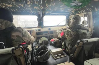 Бойцы ФСВНГ в кабине бронеавтомобиля СБМ ВПК-233136 «Тигр» на одном из направлений зоны СВО