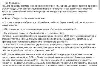 Повитрянные силы Украины рассказали невероятную историю о том, что пилот F-16 с четырьмя ракетами сбил шесть крылатых ракет