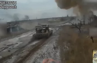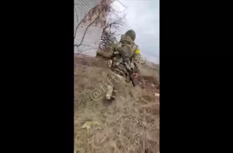 Член экипажа транспорта хохлов убегает в посадку после того, как его машину подбили