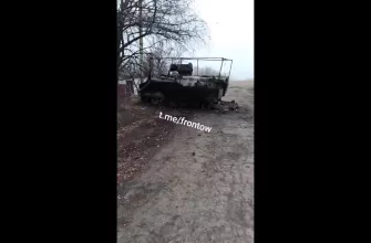 Сгоревший украинский БТР YPR-765 вместе с экипажем на окраине села Шахтерского у Великой Новоселки