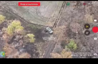 Добивание точным сбросом гранаты с квадрокоптера опрокинувшегося американского бронеавтомобиля International MaxxPro на Покровском направлении