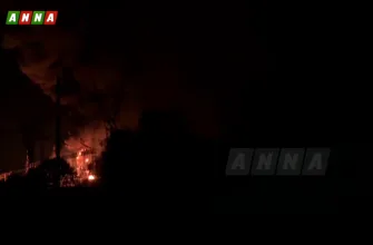 Горящий ангар для производства и хранения украинских БпЛА в районе н.п. Васищево Харьковской области после ракетного удара ВС РФ