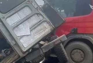 Ещё живой хряк в Курской области показывает свой уничтоженный грузовик КрАЗ-5233, перевозивший боеприпасы