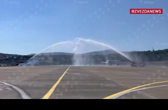 Первый борт из Москвы встретили в Геленджике водяной аркой. На втором видео — как это выглядит изнутри самолета