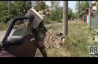 Украинский боевик ведет визуальный контроль последствий боевой работы русских дроноводов по своим автотранспортным средствам