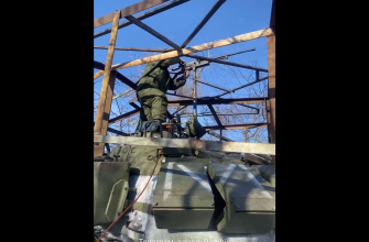Противодронный козырек с пулеметной установкой на танке «Мексика» танкистов группировки V ВС РФ из Бурятии в зоне проведения СВО