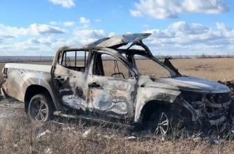 Уничтоженный русским «Ланцетом» в районе н.п. Работино на Запорожском направлении украинский бронеавтомобиль Козак-2М1