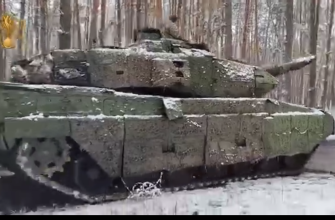 Брошенный, предположительно, в районе Авдеевки, танк Leopard 2A4 ВСУ с установленной дополнительной динамической защитой «Контакт-1»