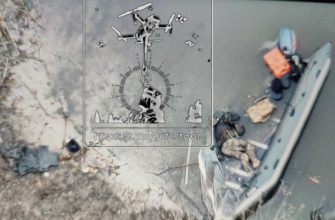 Работа ударного коптера по лодке с десантном противника в Крынках и результат успешного попадания